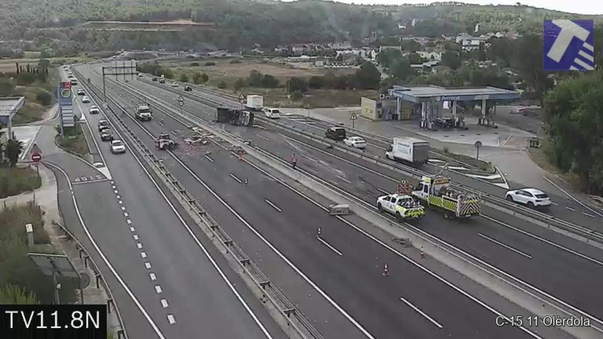 La C-15 en Olèrdola (Barcelona) está cortada en ambos sentidos para realizar tareas de limpieza por un camión que ha volcado este viernes cerca de las 9.30 horas, informa el Servei Català de Trànsit (SCT) en un apunte en 'X' recogido por Europa Press.