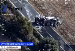 La BV-1001 en Sant Guim de Freixenet (Lleida) ha quedado cortada en ambos sentidos por un camión que se ha accidentado y ha volcado sobre las 9.36 horas de este lunes.