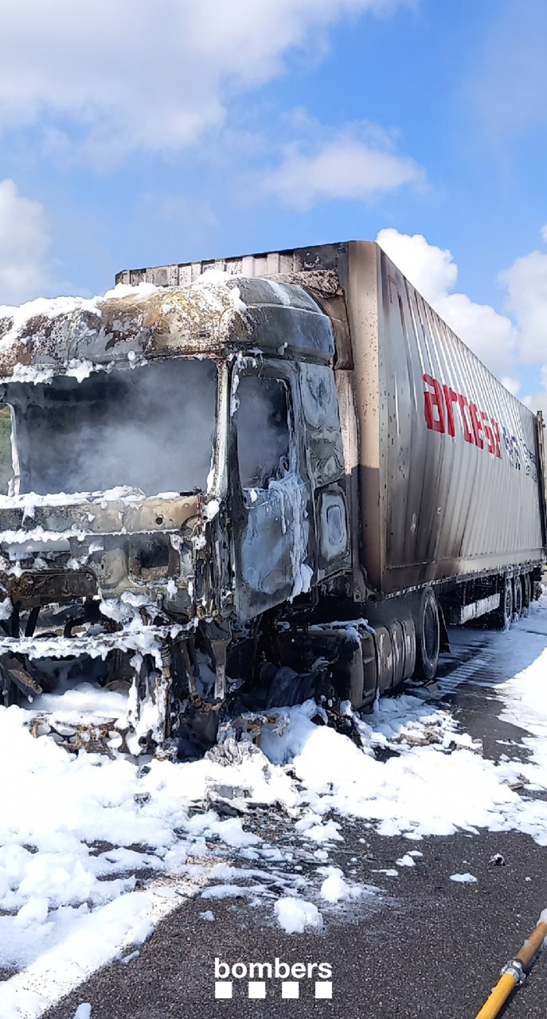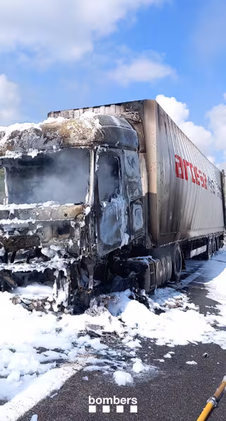 Imagen del camión quemado en Castelldans (Lleida) - BOMBERS DE LA GENERALITAT