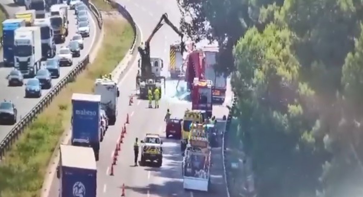 Cortada la AP-7 en La Granada (Barcelona) por la retirada de cristales que transportaba un camión - SERVEI CATALÀ DE TRÀNSIT (SCT)