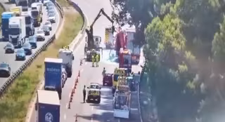 La AP-7 en La Granada (Barcelona) ha quedado cortada este viernes por la mañana por la retirada de cristales que transportaba un camión accidentado.