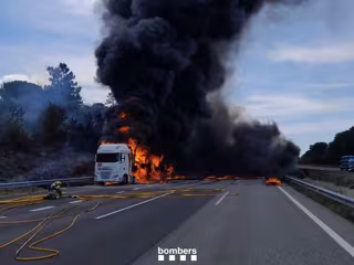 El fuego en el vehículo ha empezado sobre las 14.10 horas cuando circulaba en sentido norte, y ha obligado a activar la alerta Transcat por la carga que transporta.