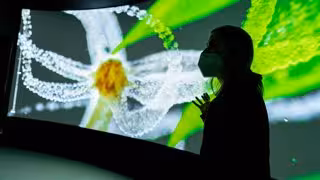 La inmersión comienza en una primera sala que introduce a los visitantes en el mundo microscópico, haciéndoles sentir como si hubiesen encogido y pudiesen ver el mundo con otra mirada.