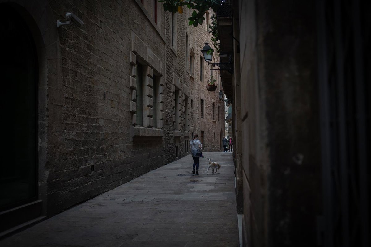 Una persona pasea por una calle del Barrio Gótico una semana después de la entrada de las nuevas restricciones en Cataluña, en Barcelona, Cataluña (España) a 23 de octubre de 2020. - David Zorrakino - Europa Press