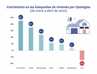 Crecimiento de búsquedas de viviendas según tipología de enero a abril de 2020, según un estudio de Fotocasa - FOTOCASA