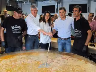 Tras los discursos, Arrimadas, Rivera y Alonso han removido el arroz que hervía a fuego lento y se han dejado arropar por los asistentes al ritmo de las canciones rumberas que han tocado en directo un grupo de música.
