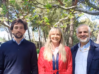 El líder de Cs, Carlos Carrizosa, junto al secretario general de Cs, Adrián Vázquez, y la candidata a la Alcaldía de Lleida, María Burrel - CS