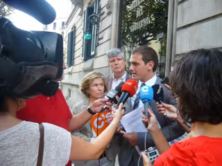 El presidente de C's, Albert Rivera, ha presentado este jueves ante la Delegación del Gobierno en Barcelona una instancia para que exija a los ayuntamientos catalanes colgar la bandera española, además de la local y la autonómica.