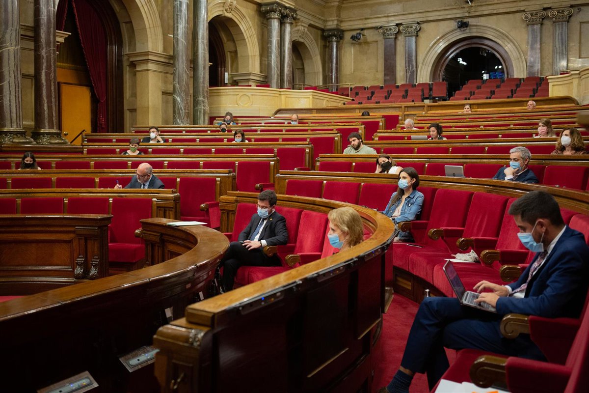 Diputados en el Parlamento catalán durante la segunda sesión plenaria monográfica sobre la gestión de las residencias para personas mayores y para personas con discapacidad durante la pandemia del COVID-19. - David Zorrakino - Europa Press