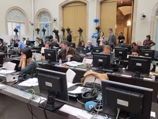 Una cuarentena de medios internacionales, la mayoría europeos, están siguiendo la jornada electoral catalana de este domingo desde el Parlament, donde se ha establecido el centro de difusión de datos.