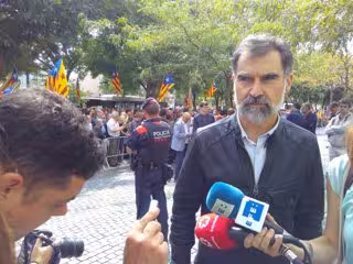 El presidente de Òmnium Cultural, Jordi Cuixart, ha afirmado que las entidades soberanistas actúan dentro de la legalidad vigente y ha afirmado que darán una respuesta "serena pero tambien contundente" ante el golpe de estado que ha asegurado que se ha hecho en Catalunya.