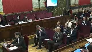 Sala del Tribunal Supremo durante el interrogatorio del presidente de mnium Cultural, Jordi Cuixart, sentado en la mesa de declaraciones, en la séptima jornada del juicio del Procés (archivo) - SEÑAL DE TV DEL TRIBUNAL SUPREMO - Archivo