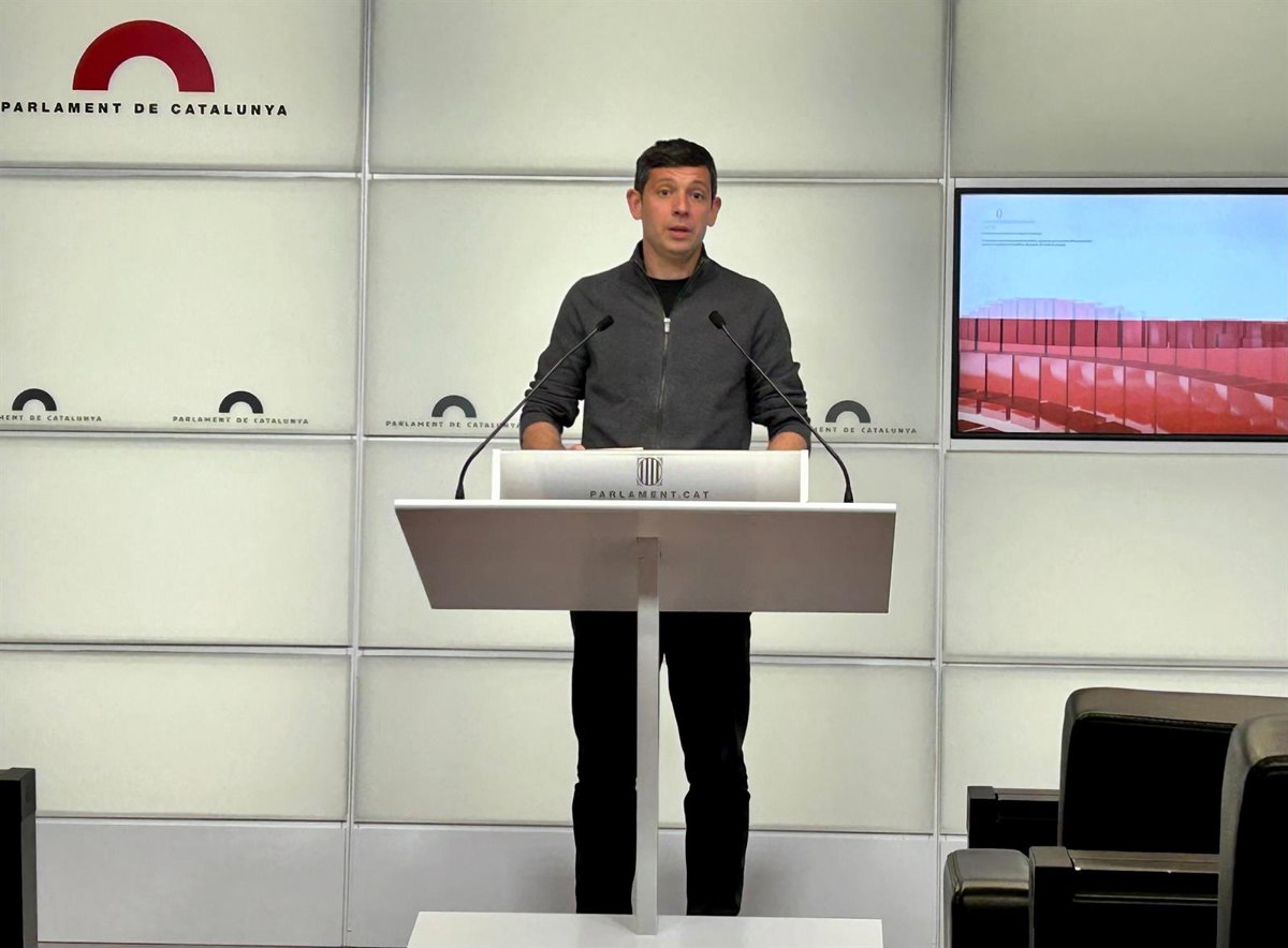 El portavoz de la CUP en el Parlament, Xavier Pellicer, en una rueda de prensa - EUROPA PRESS