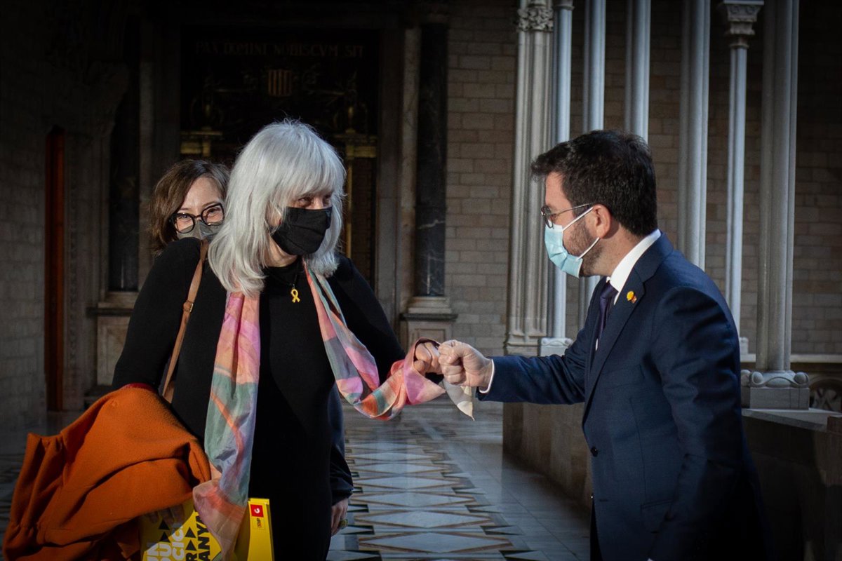 La líder de la CUP en el Parlament, Dolors Sabater, saluda al president de la Generalitat, Pere Aragons, a su llegada al Palau de la Generalitat. ARCHIVO. - David Zorrakino - Europa Press