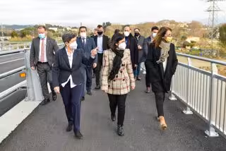 La ministra de Política Territorial y Función Pública, Carolina Darias, la consellera de Presidencia de la Generalitat, Meritxell Budó, y la delegada del Gobierno en Catalunya, Teresa Cunillera, han visitado este lunes la zona del río Tordera afectada el pasado enero por el temporal Gloria, entre Blanes (Girona) y Malgrat de Mar (Barcelona).