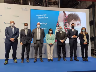 La ministra de Sanidad, Carolina Darias (en el centro), durante la inauguración de la nueva sede de Alliance Healthcare en Viladecans (Barcelona) - EUROPA PRESS