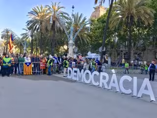 Además, los organizadores han colocado unas grandes letras blancas delante del TSJC que conforman la palabra democracia para recibir a Forcadell, que ha llegado andando desde el Parlament acompañada por una delegación institucional encabezada por el presidente de la Generalitat, Carles Puigdemont.