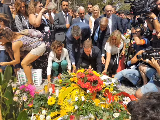 Entre los populares que han acompañado al líder del partido en la ofrenda floral han estado el líder del PP catalán, Xavier García Albiol; el líder en el Ayutamiento de Barcelona, Alberto Fernández; la portavoz en el Congreso, Dolors Montserrat; las también diputadas Mari Mar Blanco, Alícia Sánchez Camacho y Àngels Esteller, y el exministro Jorge Fernández.