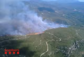Los Bomberos han recibido el aviso del fuego a las 14.38 horas, y se han desplazado hacia el lugar del incendio situado al sur de la Serra de Ramonet, en una zona conocida como la Pedrera cerca de la población de Les Pobles.