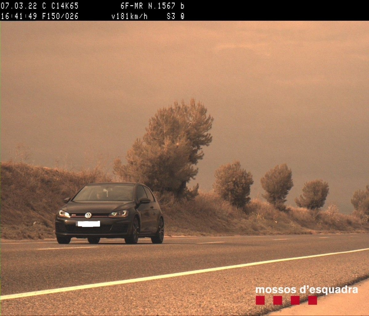 Los Mossos d'Esquadra denunciaron este lunes a un conductor de 23 años por un presunto delito contra la seguridad vial por circular a 181 kilómetros por hora en un tramo limitado a 90 de la carretera C-14 en el término municipal de Verdú (Lleida).