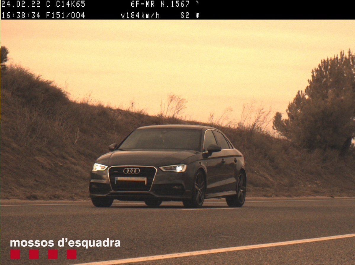 Los Mossos d'Esquadra han denunciado penalmente a un conductor por circular a 184 kilómetros por hora en un tramo de la carretera C-14 en Verdú (Lleida) limitado a 90 kilómetros por hora.