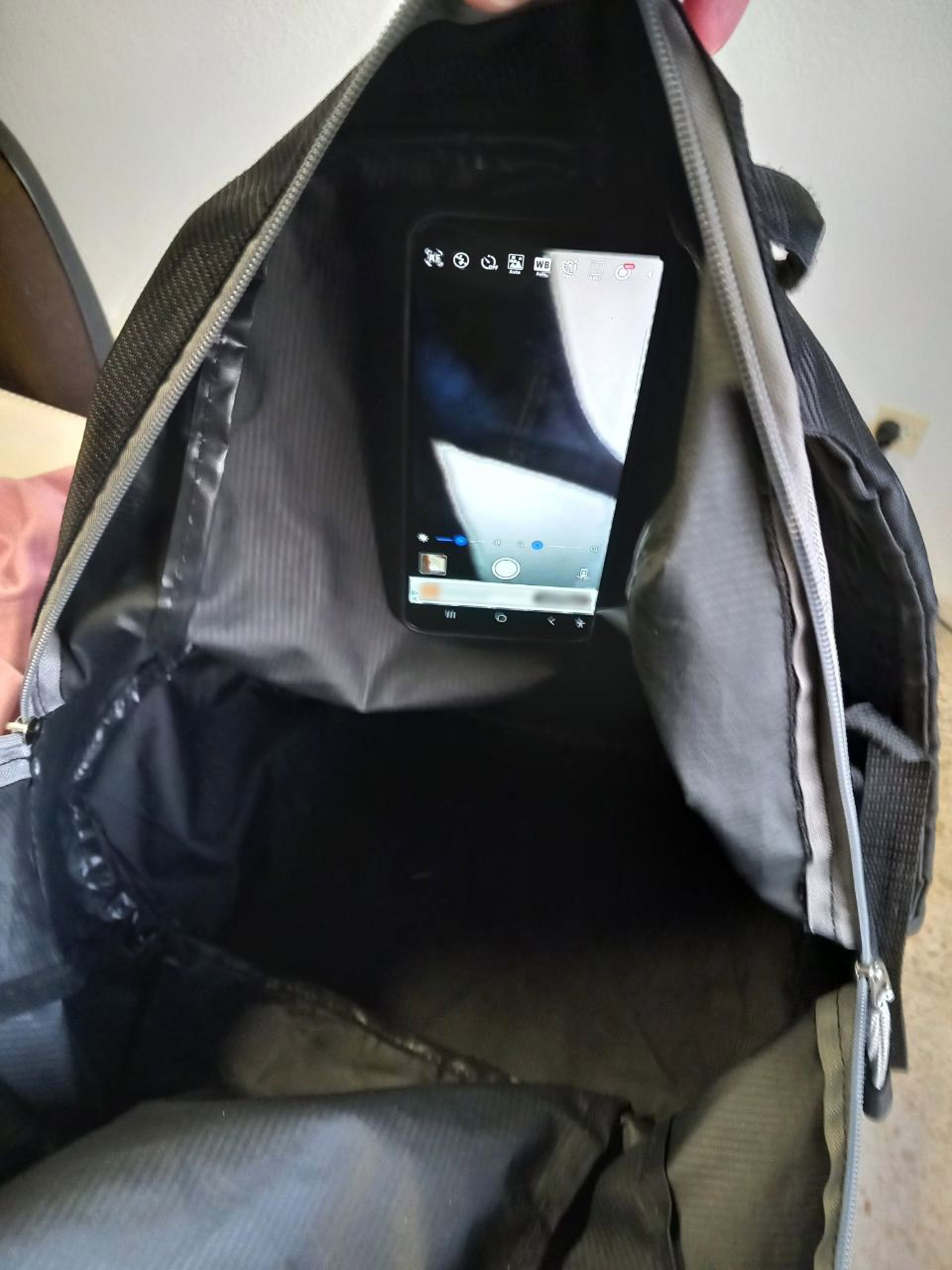 Mochila del denunciado con un móvil enganchado en su interior - MOSSOS D'ESQUADRA