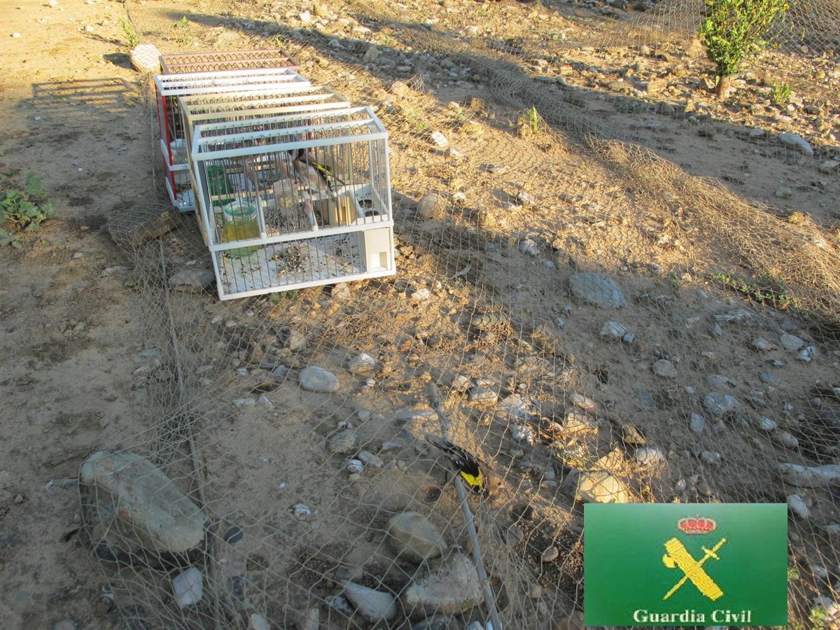 Además de la red, la Guardia Civil también encontraron cuatro jaulas con jilgueros vivos como reclamo y ocho pájaros de diversas especies, los cuales fueron devueltos a su espacio natural.