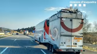 Los Mossos d'Esquadra han denunciado a dos conductores de autocar de nacionalidad marroquí como presuntos autores de una infracción administrativa por conducir sin haber descansado el tiempo reglamentario y llevar un remolque con exceso de peso.