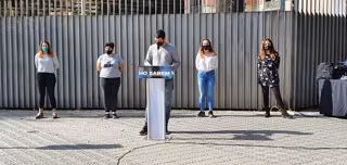 El abogado de Alerta Solidria Xaver Pellicer, en rueda de prensa frente al Departamento de Interior, en la que ha denunciado presuntos espionajes a varias organizaciones de izquierdas y movimientos independentistas. Barcelona, 28 de octubre de 2020. - ALERTA SOLIDRIA