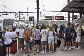 Decenas de personas esperan a poder coger un tren en Vilanova i la Geltrú, una de las estaciones afectadas, a 16 de agosto de 2023, en Vilanova i la Geltrú, Barcelona, Catalunya - David Oller - Europa Press
