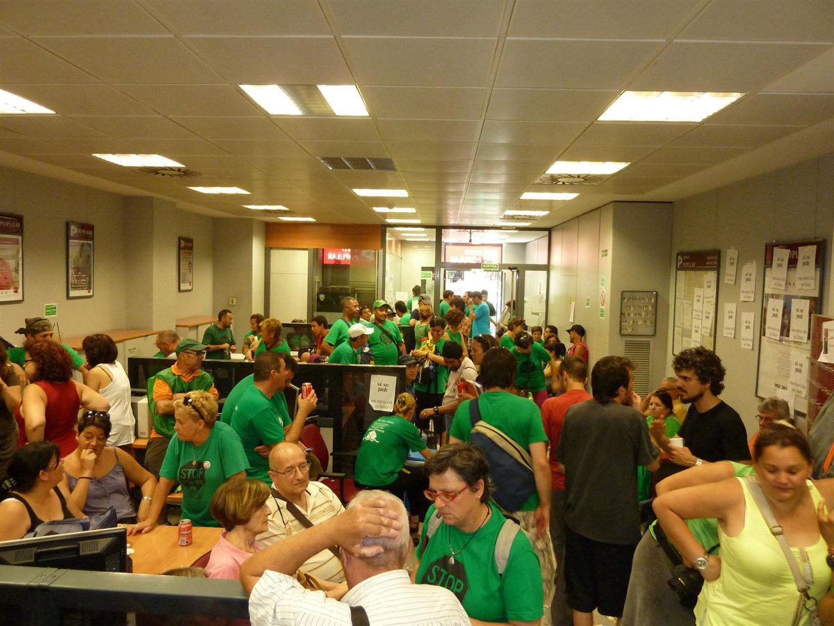 Unas 120 personas se han encerrado en el interior de la oficina que el Banco Popular tiene ubicada en las Ramblas de Barcelona en solidaridad con José Manuel, según ha informado la propia Plataforma de Afectados por la Hipoteca en su cuenta oficial de Twitter. Mientras, a las puertas de la sucursal bancaria, un numeroso grupo de simpatizantes y activistas de la PAH, la mayoría con las camisetas verdes antidesahucios, coreaban gritos de apoyo a los encerrados.