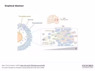 Al entrar en contacto con el tejido sano se produce una falta de oxígeno que, por un lado, causa que las células tumorales lo invadan y, por el otro, se cree un área necrótica dentro del tumor y las células del sistema inmunitario se desplazan hasta esta zona para "limpiar" de células tumorales muertas y, de esta manera, permite el crecimiento de glioblastomas.