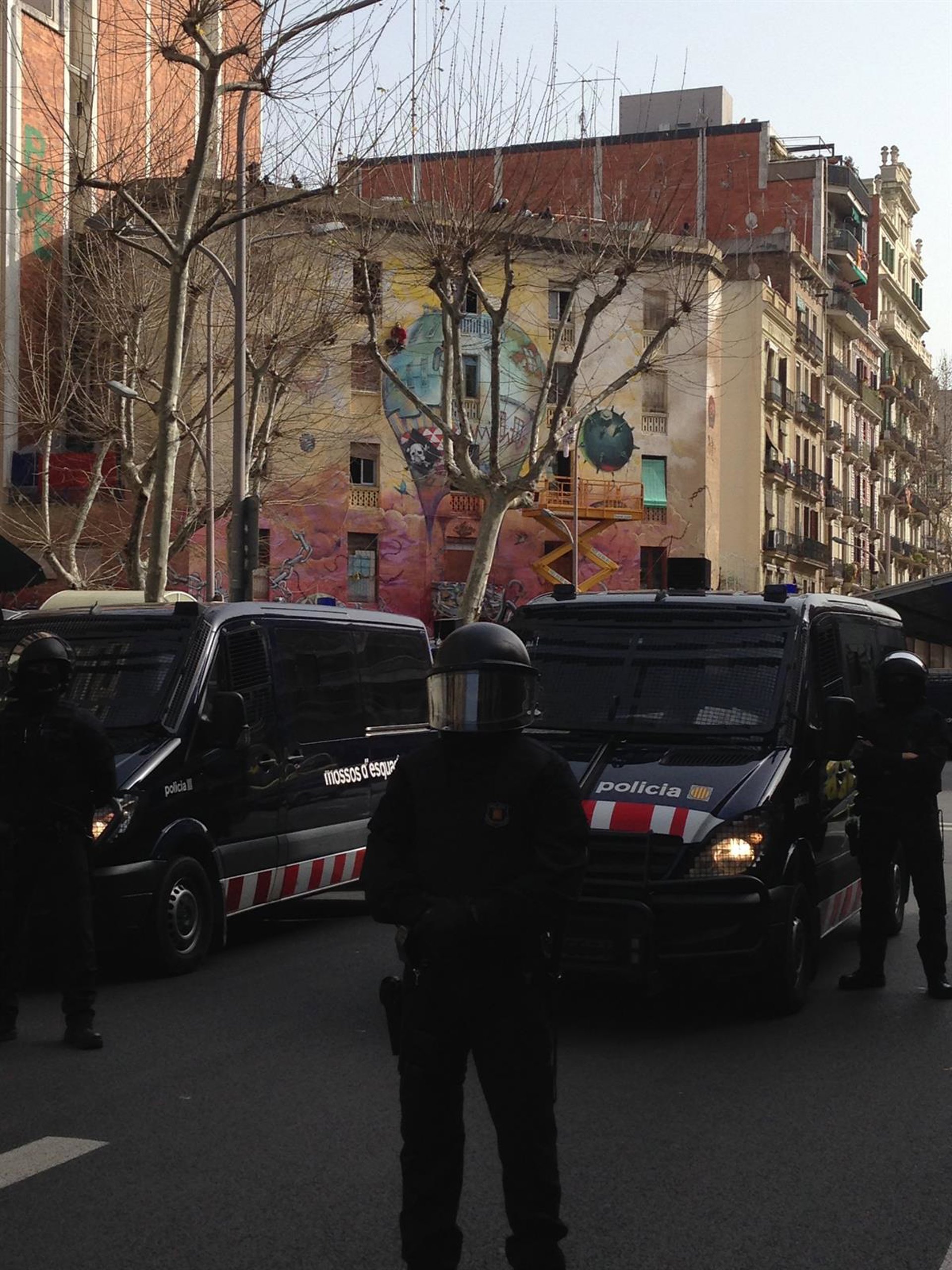 En las calles Urgell y Floridablanca se han concentrado varios centenares de personas contra el desalojo, con una pancarta con el mensaje: 'Basta de ataques a los espacios liberados'.