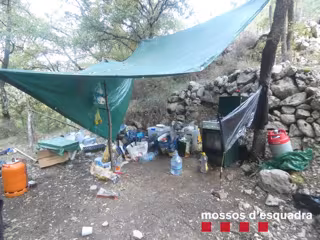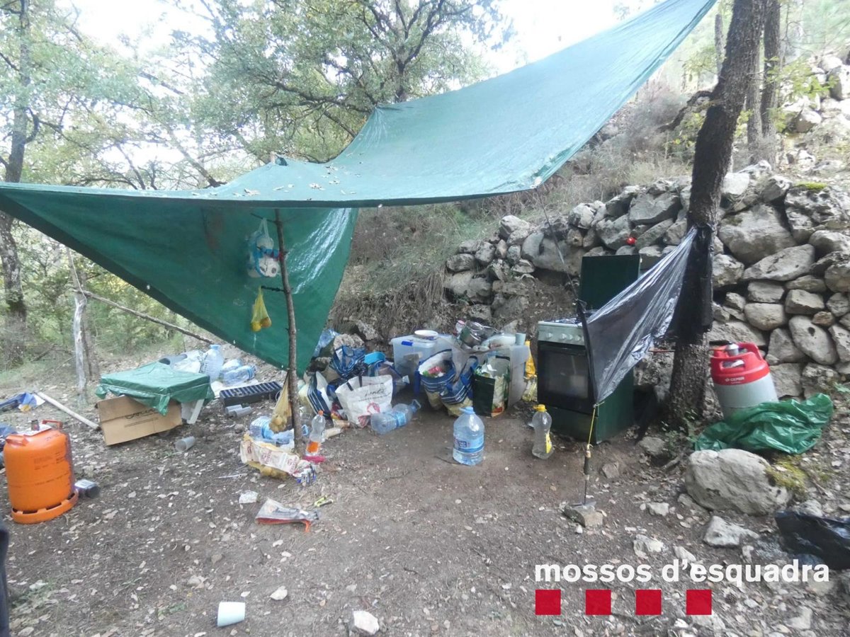 Campamento de la plantación de marihuana desmantelada en Fígols i Aliny (Lleida). - MOSSOS D'ESQUADRA