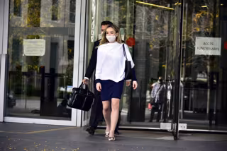 La esposa de Josep Maria Mainat, Angela Dobrowolski, llega al juzgado en Barcelona, en la Ciutat de la Justícia de Barcelona, Catalunya (España) a 25 de octubre de 2020. - David Oller - Europa Press