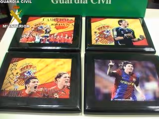 La droga, colocada en planchas envueltas en plástico, estaba escondida en el hueco entre la imagen serigrafiada de los jugadores y el marco del cuadro.
