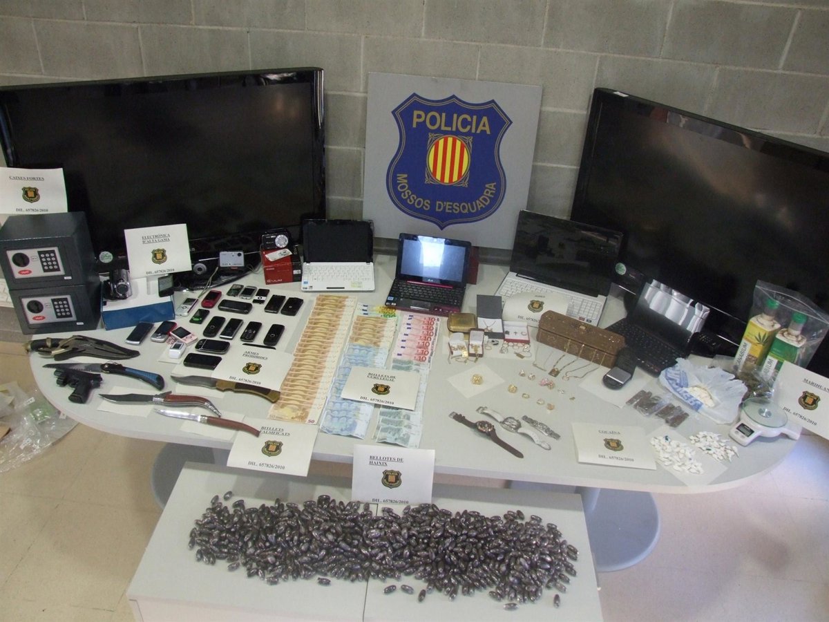 En el operativo, dirigido por el Juzgado de Instrucción número 2 de Martorell, se registraron tres domicilios y se recuperaron 105 gramos de cocaína de gran pureza, 3,5 kilos de hachís, 2.000 euros en billetes falsos, joyas, televisores de plasma y una pistola simulada.