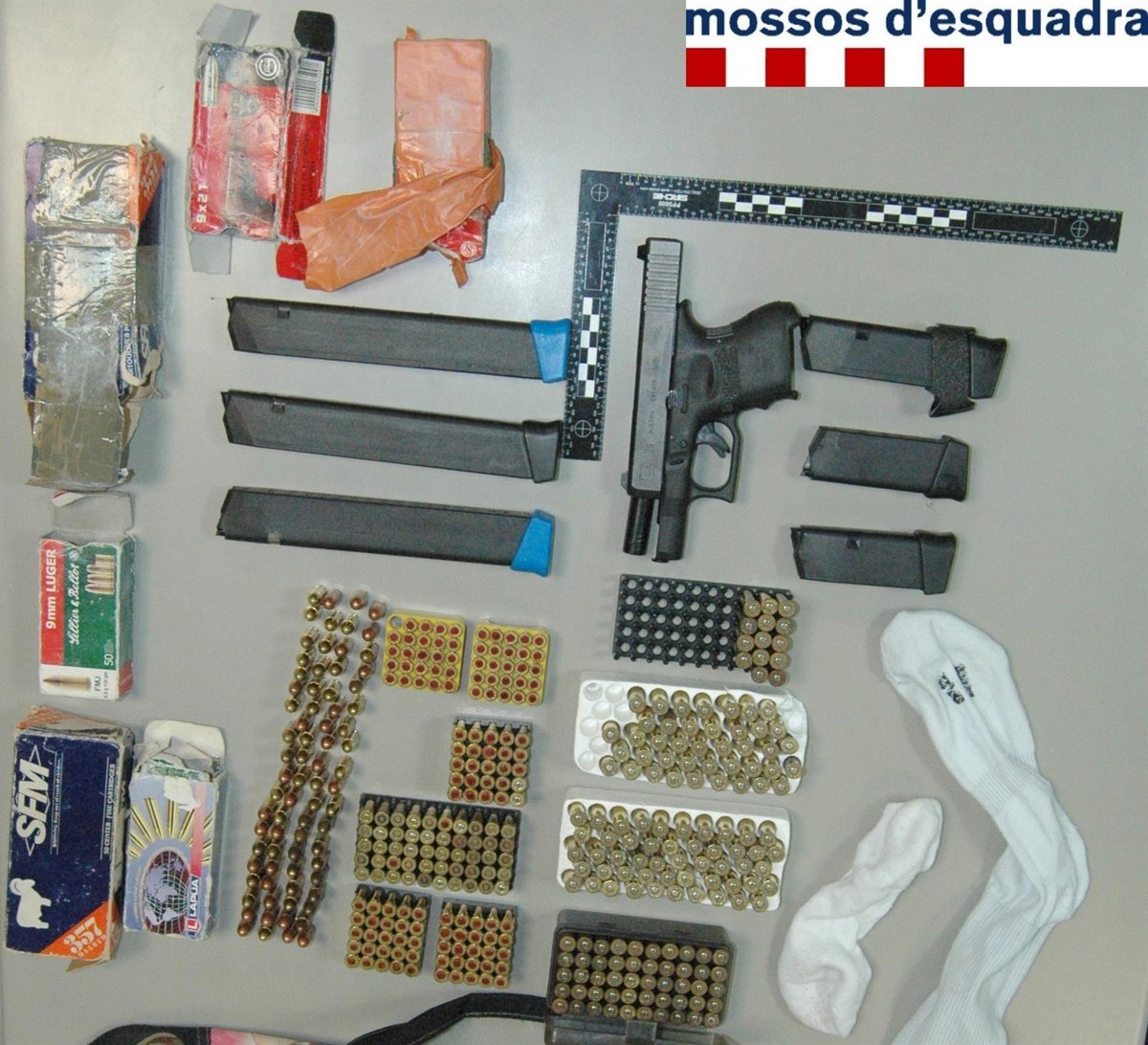 Los Mossos d'Esquadra han detenido a un hombre con antecedentes en Figueres (Girona) que llevaba una bolsa de deporte con una pistola semiautomática de nueve milímetros, seis cargadores y munición diversa en un bloque de pisos de la avenida Vilallonga.