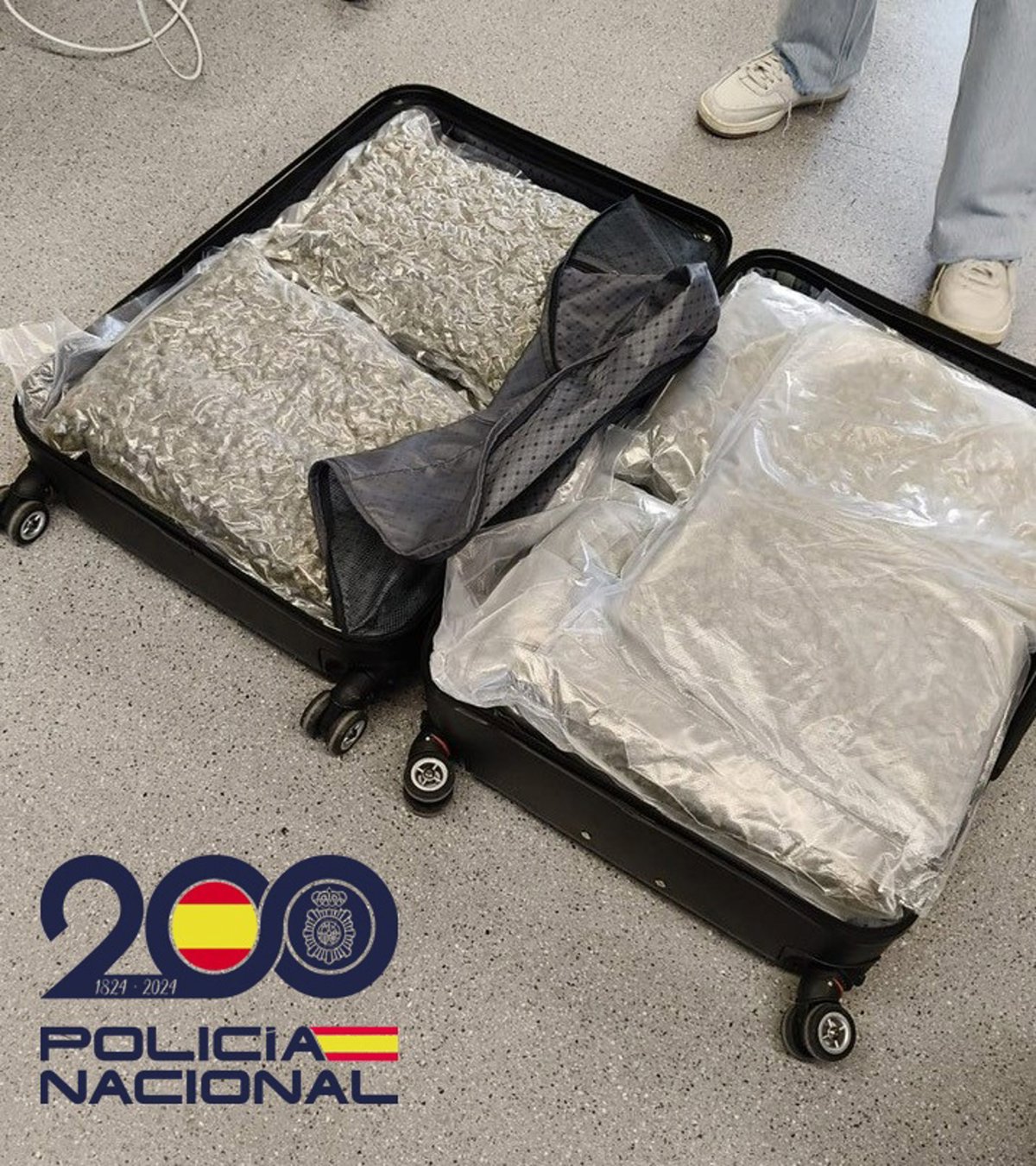 El ciudadano dio respuestas contradictorias y ante las sospechas los agentes le pidieron abrir el equipaje, encontrando 24 kilogramos de marihuana repartidos en 22 bolsas envasadas al vacío; el ciudadano quedó detenido al momento y la policía informa que la droga intervenida, en el caso de que hubiese llegado a Alemania, tendría un valor aproximado de unos 150.000 euros en el mercado negro.