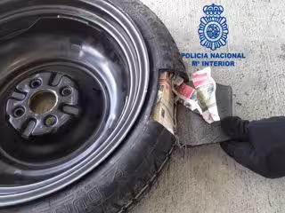 Con la ayuda de una dotación canina de la Guardia Civil, hallaron 113.100 euros más ocultos en el interior de la rueda de repuesto.