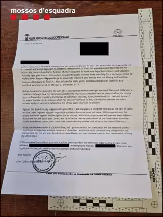 Los Mossos d'Esquadra han detenido a un hombre en Valencia por presuntamente mandar 4.742 cartas con sellos falsificados desde la demarcación de Barcelona a países de la Unión Europea para estafar a los destinatarios ofreciendo el cobro de una supuesta herencia.