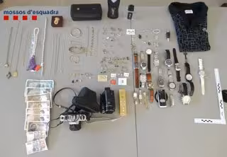 La policía catalana comprobó que los presuntos ladrones llevaban "un gran botín": varios aparatos electrónicos, diez cadena de cuello, 22 pares de pendientes, 14 anillos, siete brazaletes, cuatro collares, siete agujas de pecho y 17 relojes.