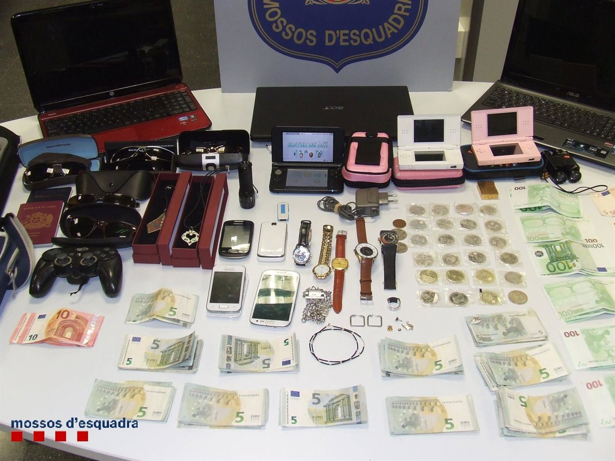 En el equipaje que se les intervino en el momento de la detención, los Mossos encontraron joyas, relojes de alta gama, monedas de plata, teléfonos móviles, ordenadores portátiles y dinero en efectivo, procedentes de un robo en Cerdanyola del Vallès y otro en Premià de Mar (Barcelona).