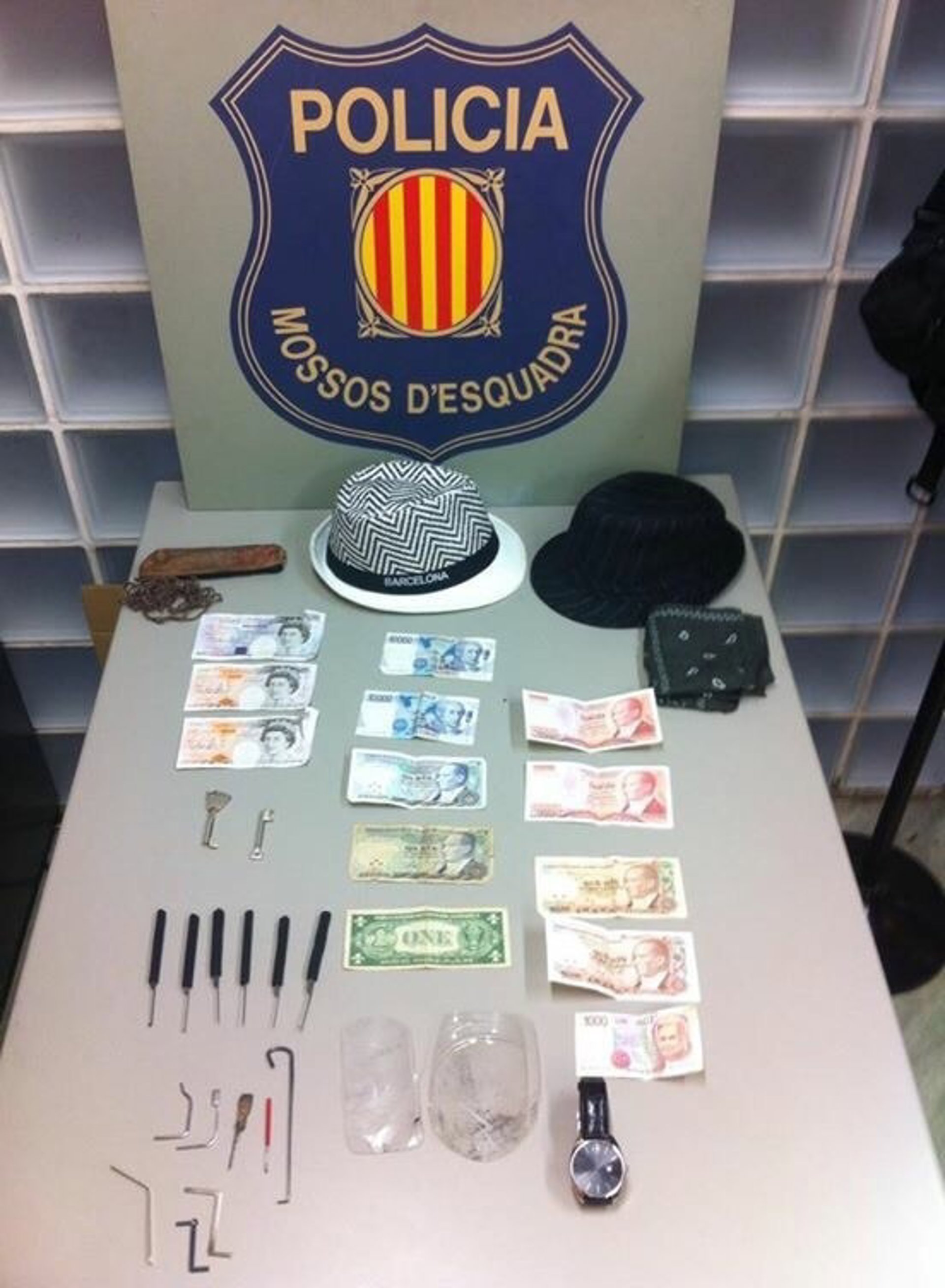 Llevaban encima divisas --libras inglesas y liras italianas y turcas--, un reloj y un estuche de piel con estiletes que se utilizan para forzar puertas, y fueron arrestados al constatar que en una casa de la Creu de Girona habían robado divisas.