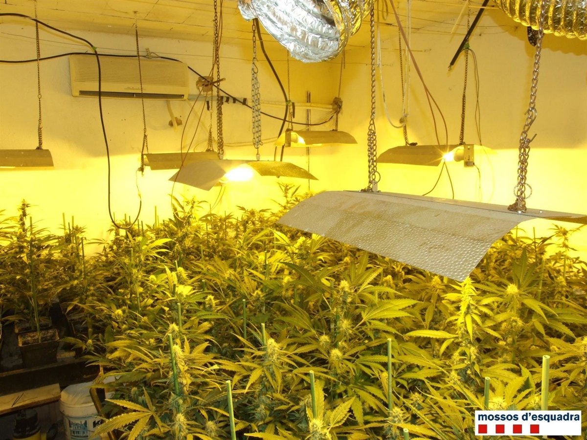 Los Mossos encontraron durante el registro 271 plantas en plena floración, 387 esquejes preparados para ser plantados y cinco kilos de cogollos listos para su venta y material para su cultivo y crecimiento -- ventiladores, fertilizante y extractores--.