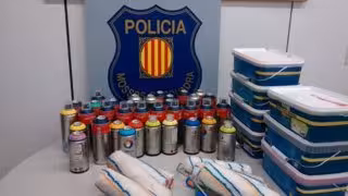 La policía catalana ha activado la Unidad de Subsuelo para inspeccionar los espacios de difícil acceso --como falsos techos y conductos de ventilación--, e inicialmente ha detenido a dos personas, hasta arrestar finalmente a seis, a los que han intervenido botes de espray y pintura y rodillos.