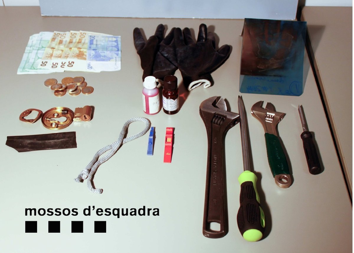 Los tres ladrones llevaban encima 400 euros, dos destornilladores, unos guantes, dos llaves inglesas, un bombín de puerta roto y un bote de producto químico para dormir a gente.