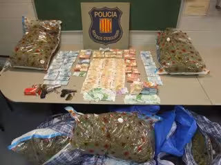 Al acudir a la casa de donde habían visto que salía la droga, detuvieron a las dos personas que estaban allí y descubrieron que habían tirado en el patio de vecinos una bolsa con cuatro kilos de cogollos, dos armas de fuego y 144.000 euros en efectivo.