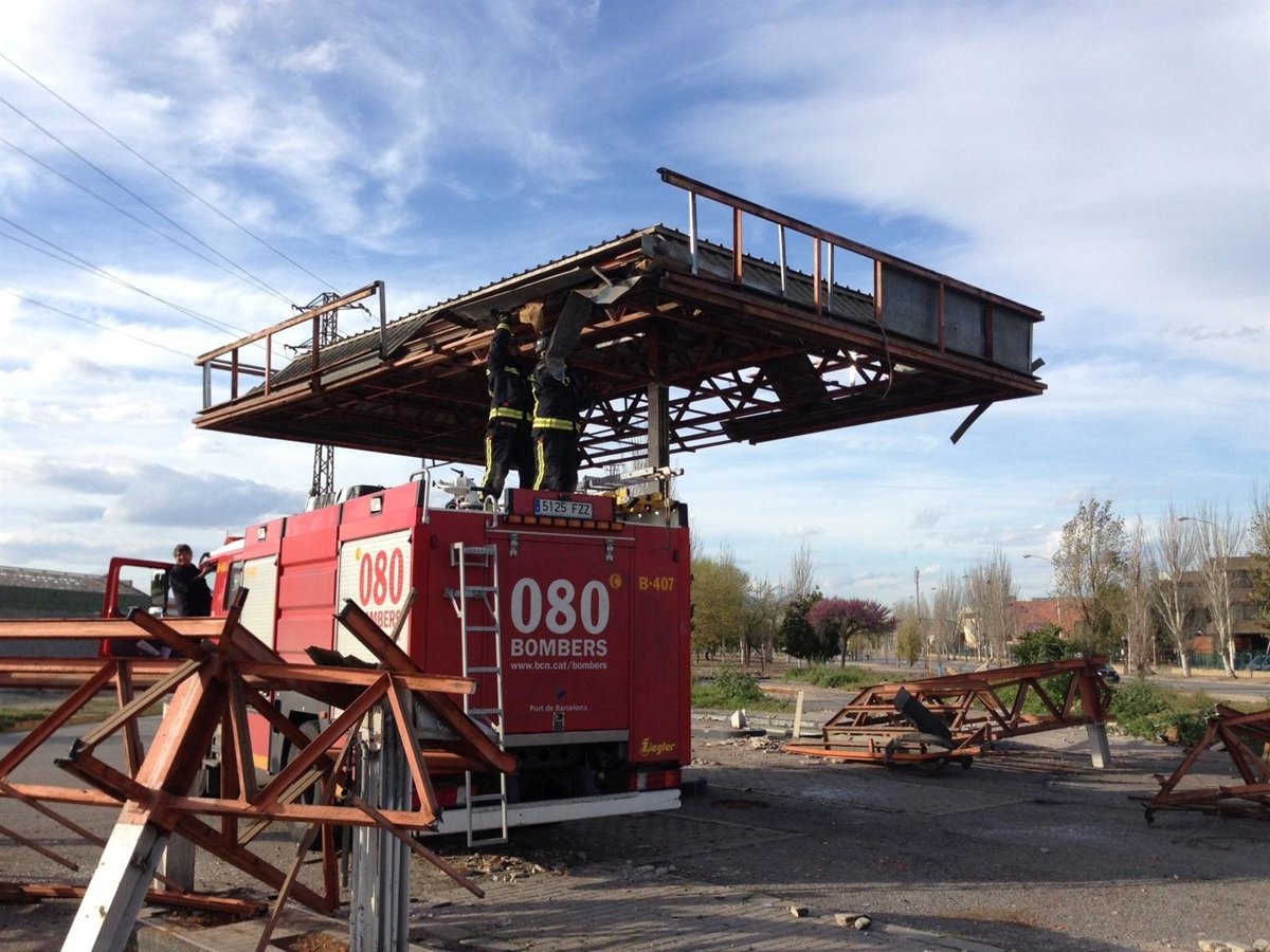 La Guardia Urbana requirió la presencia de los Bomberos de Barcelona para apuntalar la instalación, ya que los detenidos habían cortado gran parte de la estructura de la gasolinera y existía riesgo de hundimiento de la parte que quedaba.