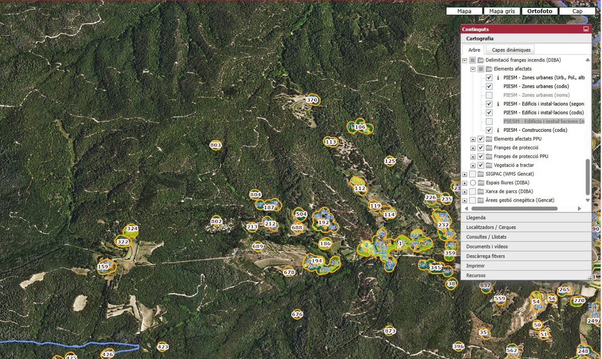 La Diputación de Barcelona ha entregado a 133 municipios sus planos de delimitación para prevenir incendios, que identifican las urbanizaciones, núcleos de población y edificios que están obligados a tener una franja perimetral de protección de 25 metros.